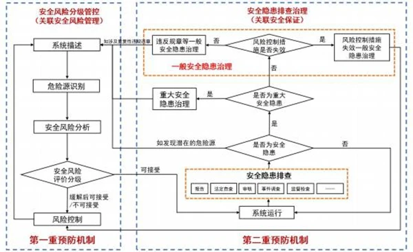如發(fā)現(xiàn)重大安全隱患,應按照8.3的要求進行治理;如發(fā)現(xiàn)一般安全隱患,應當按照8.4的要求進行治理;排查中如發(fā)現(xiàn)潛在的危險源,應回溯到“7.2系統(tǒng)描述”進行定位和梳理,適時啟動安全風險分級管控流程識別危險源并管控相關風險;如評估發(fā)現(xiàn)的問題不屬于上述任何一類,可選擇是否改進后,回到系統(tǒng)運行環(huán)節(jié)。