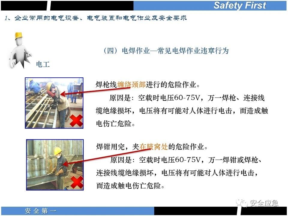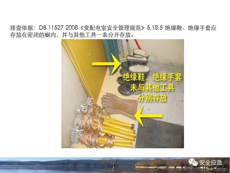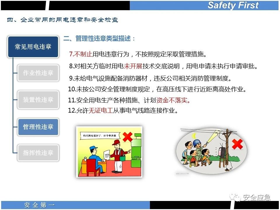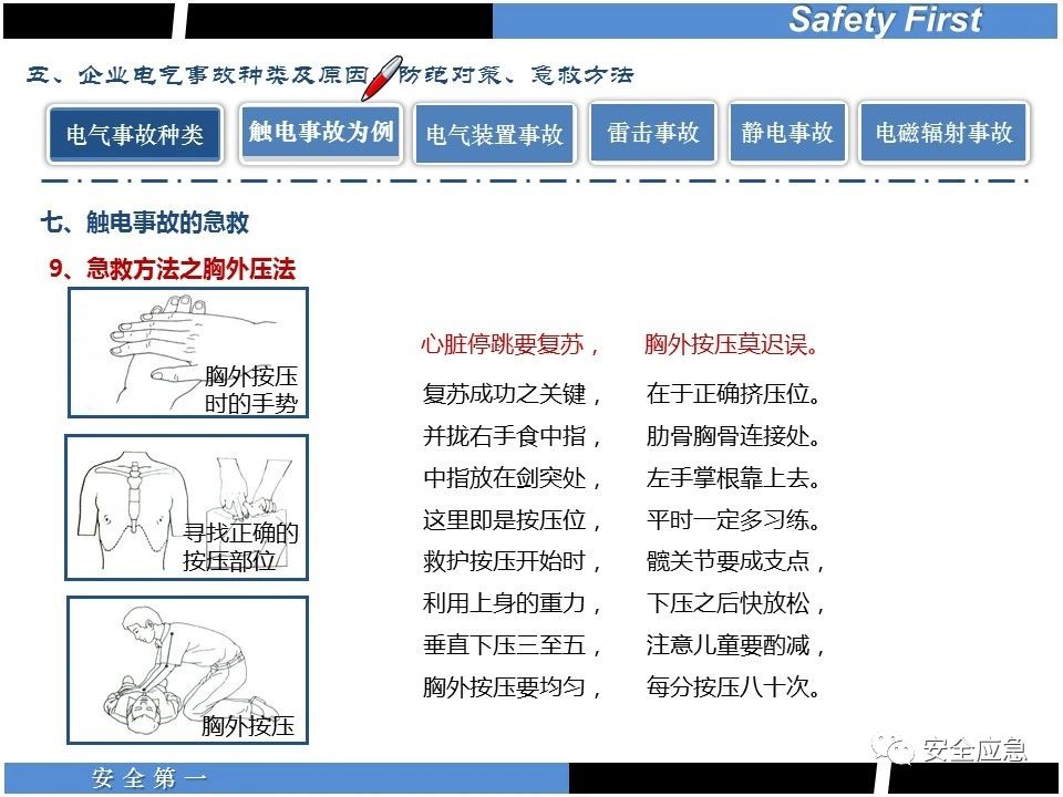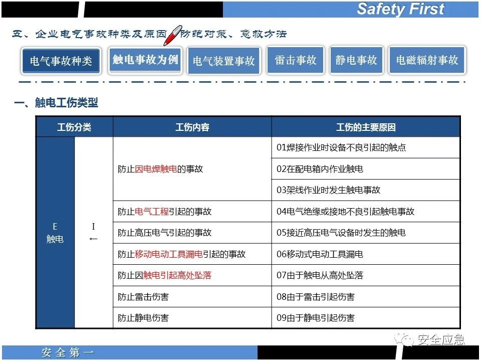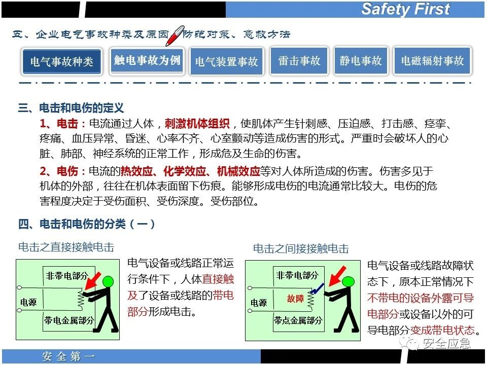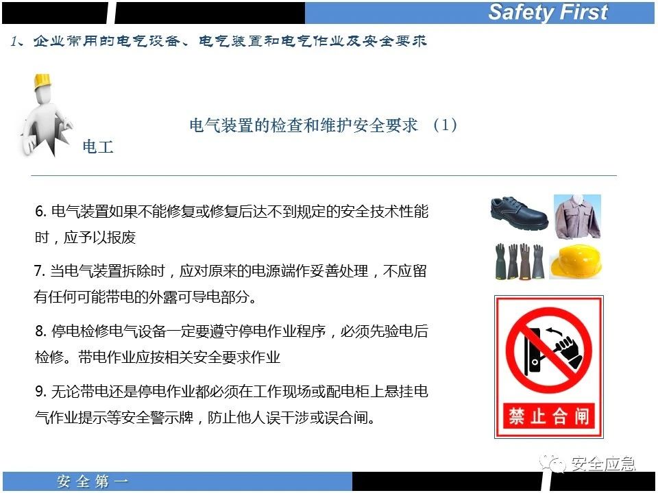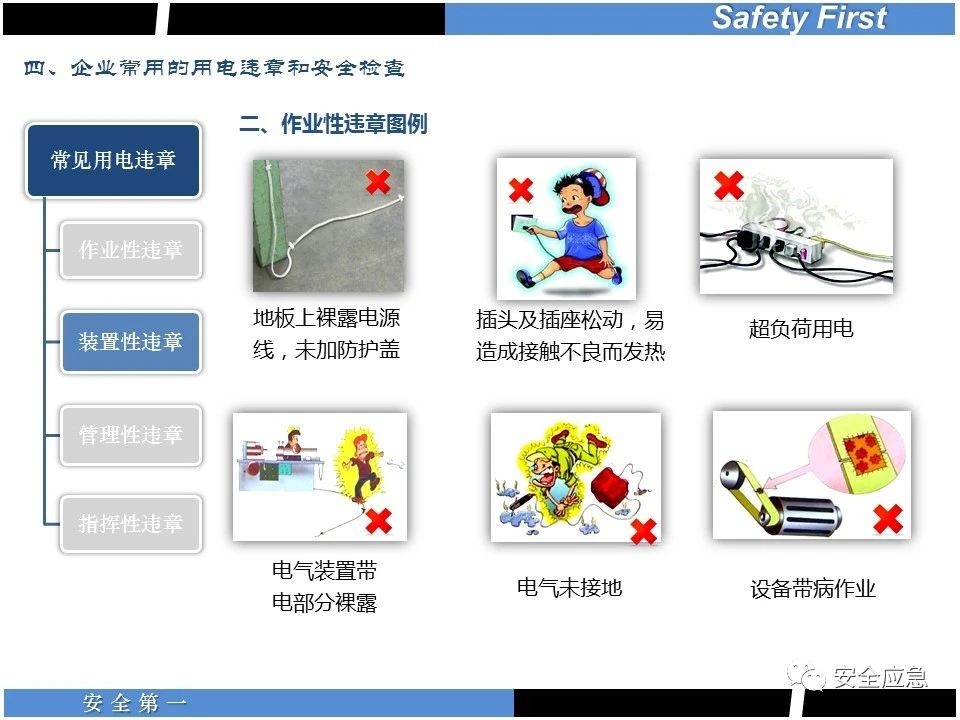 案例73 事故案例73:某35變電站準(zhǔn)備10kV避雷器試驗(yàn)。作業(yè)人員會同運(yùn)行人員準(zhǔn)備查看設(shè)備實(shí)際情況,拆卸10kV開關(guān)柜背板螺栓,打開了柜門上的電磁鎖,并打開了后柜門后,作業(yè)人員探頭進(jìn)入開關(guān)柜內(nèi)時(shí),對開關(guān)柜放電。 其它案例見17、18、19、20、21、22、23、50、52。 (27)多組人員組織混亂 案例74 事故案例74:某單位開展500kV線路停電檢修和地線融冰試驗(yàn)。1名工作人員不聽他人勸阻,登塔拆除引流線。隨后開展地線融冰試驗(yàn),該工作人員觸電死亡。 其它案例見45、46、47、48。 (28)交底不認(rèn)真 案例75 事故案例75:某工作負(fù)責(zé)人帶領(lǐng)兩名工作人員準(zhǔn)備在10kV線路裝設(shè)接地線。工作前,工作負(fù)責(zé)人沒有進(jìn)行班前(后)會,沒有分配工作任務(wù),也沒有交代安全注意事項(xiàng),另外兩人也沒有主動詢問,相互提醒,導(dǎo)致工作負(fù)責(zé)人無監(jiān)護(hù)誤登運(yùn)行線路,造成觸電。 其它案例見32。 (29)監(jiān)護(hù)不到位 l 單人工作無監(jiān)護(hù) 事故案例:36。 l 監(jiān)護(hù)人參與工作 事故案例:11。 l 監(jiān)護(hù)不認(rèn)真,或默許違章行為 事故案例:67。 (30)人員、工作安排不恰當(dāng) 案例76 事故案例76:某供電所安排不具備單獨(dú)工作資格和能力的新入廠員工上桿進(jìn)行配變設(shè)備搶修工作,由于安全距離不夠,員工經(jīng)驗(yàn)不足,監(jiān)護(hù)不到位,導(dǎo)致觸電。 案例77 事故案例77:某高壓試驗(yàn)班開展定檢預(yù)試作業(yè)。工作負(fù)責(zé)人與工作人員在抄錄放電計(jì)數(shù)器銘牌,另一名剛參加工作不久的工作人員拿著自制試驗(yàn)線插入移動電源盤插座內(nèi),然后,用左、右手分別拿住兩個(gè)鱷魚夾準(zhǔn)備對放電器搭接做試驗(yàn),左、右手習(xí)慣性的分別握住了兩個(gè)鱷魚夾的導(dǎo)體部分,此時(shí)電流通過人體,漏電保護(hù)器沒有動作,觸電死亡。 (31)單人作業(yè) l 野外單人巡線、勘察 案例78 事故案例78:某單位開展線路巡視時(shí),單人作業(yè),在被告知“巡視完N58塔后切勿過江,要沿原路返回”的情況下,仍然獨(dú)自一人違規(guī)游泳過江,溺水身亡。 案例79 事故案例79:某單位野外勘察時(shí),某工作人員在未告知工作負(fù)責(zé)人的情況下,獨(dú)自一人返回車輛所在地,途中墜落懸崖暈倒,受輕傷并失蹤12小時(shí)。 附件:最全面的電氣安全培訓(xùn),實(shí)用!