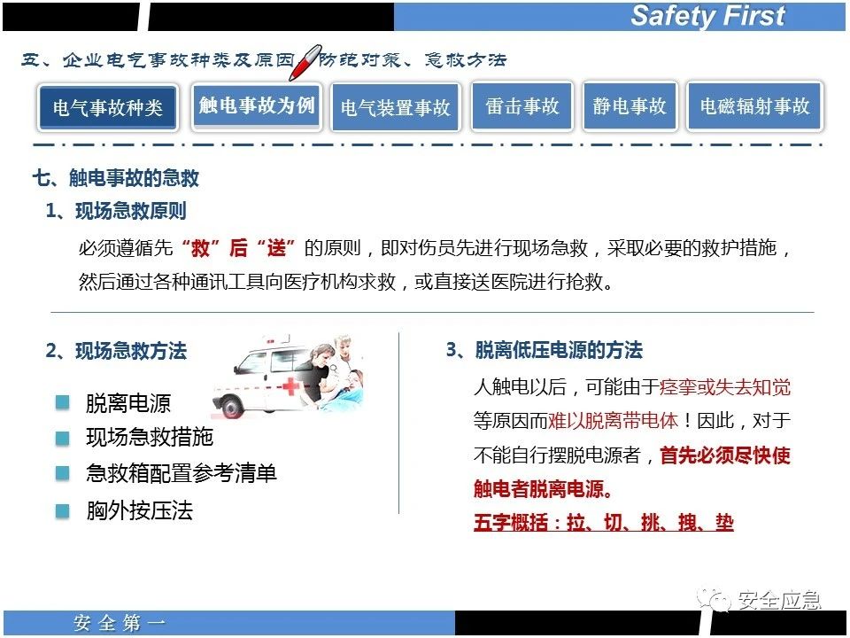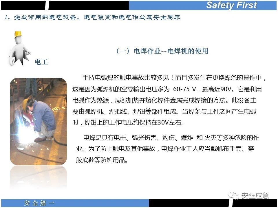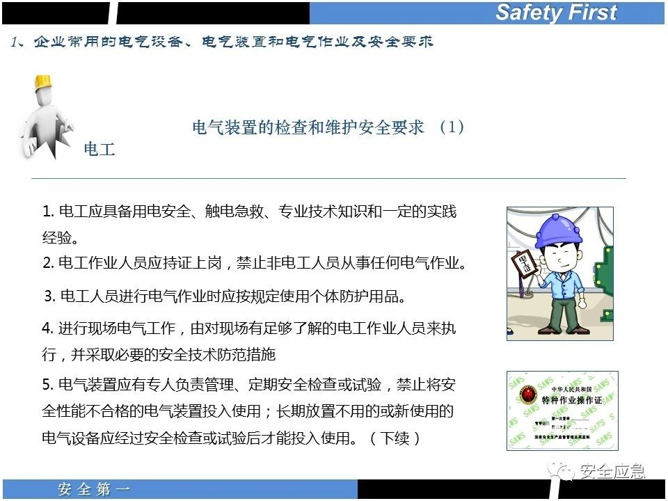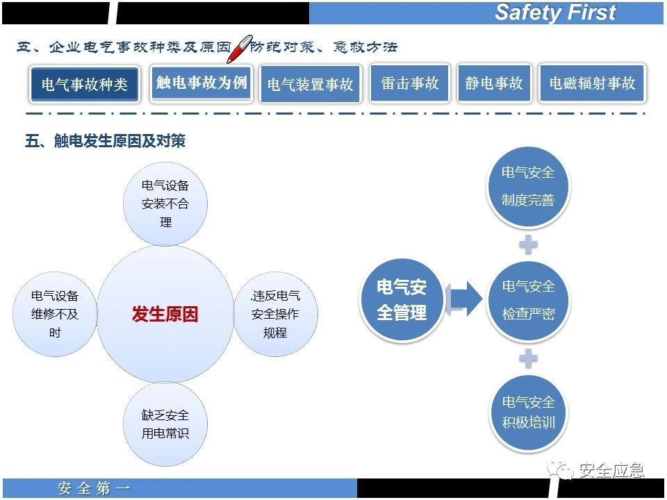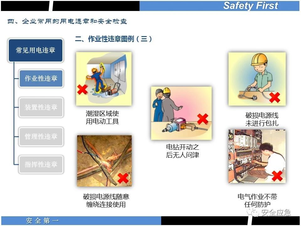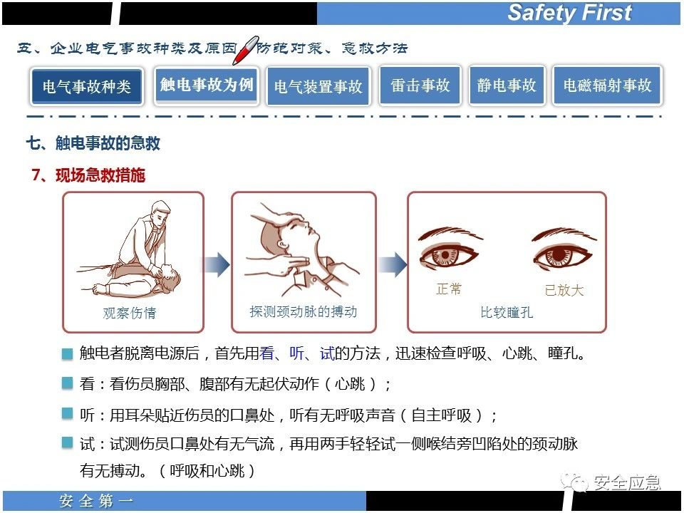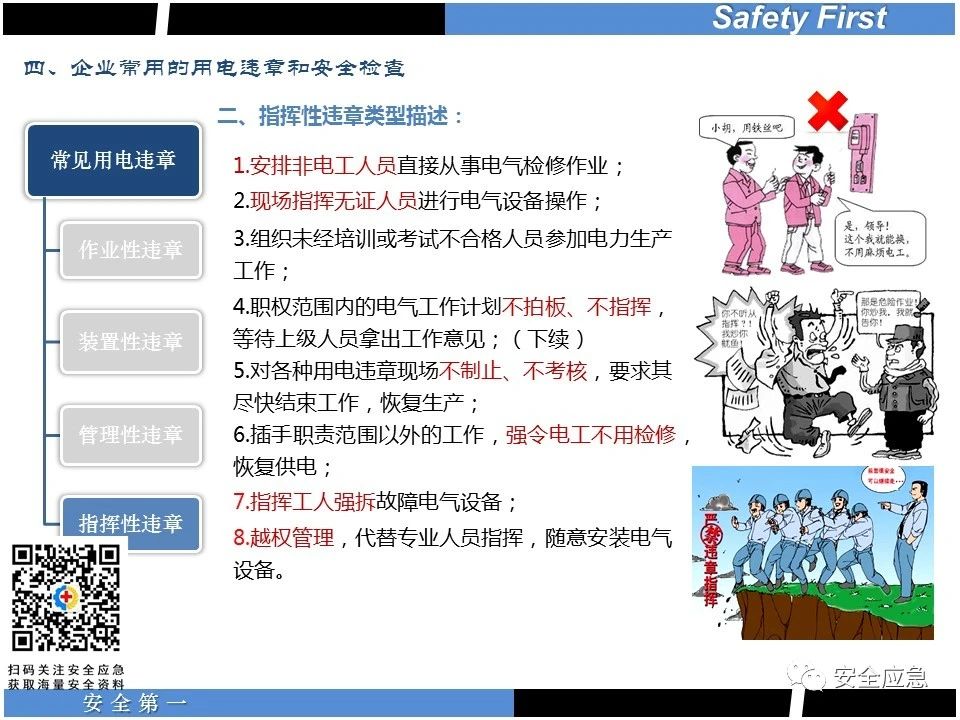 案例73 事故案例73:某35變電站準(zhǔn)備10kV避雷器試驗(yàn)。作業(yè)人員會同運(yùn)行人員準(zhǔn)備查看設(shè)備實(shí)際情況,拆卸10kV開關(guān)柜背板螺栓,打開了柜門上的電磁鎖,并打開了后柜門后,作業(yè)人員探頭進(jìn)入開關(guān)柜內(nèi)時(shí),對開關(guān)柜放電。 其它案例見17、18、19、20、21、22、23、50、52。 (27)多組人員組織混亂 案例74 事故案例74:某單位開展500kV線路停電檢修和地線融冰試驗(yàn)。1名工作人員不聽他人勸阻,登塔拆除引流線。隨后開展地線融冰試驗(yàn),該工作人員觸電死亡。 其它案例見45、46、47、48。 (28)交底不認(rèn)真 案例75 事故案例75:某工作負(fù)責(zé)人帶領(lǐng)兩名工作人員準(zhǔn)備在10kV線路裝設(shè)接地線。工作前,工作負(fù)責(zé)人沒有進(jìn)行班前(后)會,沒有分配工作任務(wù),也沒有交代安全注意事項(xiàng),另外兩人也沒有主動詢問,相互提醒,導(dǎo)致工作負(fù)責(zé)人無監(jiān)護(hù)誤登運(yùn)行線路,造成觸電。 其它案例見32。 (29)監(jiān)護(hù)不到位 l 單人工作無監(jiān)護(hù) 事故案例:36。 l 監(jiān)護(hù)人參與工作 事故案例:11。 l 監(jiān)護(hù)不認(rèn)真,或默許違章行為 事故案例:67。 (30)人員、工作安排不恰當(dāng) 案例76 事故案例76:某供電所安排不具備單獨(dú)工作資格和能力的新入廠員工上桿進(jìn)行配變設(shè)備搶修工作,由于安全距離不夠,員工經(jīng)驗(yàn)不足,監(jiān)護(hù)不到位,導(dǎo)致觸電。 案例77 事故案例77:某高壓試驗(yàn)班開展定檢預(yù)試作業(yè)。工作負(fù)責(zé)人與工作人員在抄錄放電計(jì)數(shù)器銘牌,另一名剛參加工作不久的工作人員拿著自制試驗(yàn)線插入移動電源盤插座內(nèi),然后,用左、右手分別拿住兩個(gè)鱷魚夾準(zhǔn)備對放電器搭接做試驗(yàn),左、右手習(xí)慣性的分別握住了兩個(gè)鱷魚夾的導(dǎo)體部分,此時(shí)電流通過人體,漏電保護(hù)器沒有動作,觸電死亡。 (31)單人作業(yè) l 野外單人巡線、勘察 案例78 事故案例78:某單位開展線路巡視時(shí),單人作業(yè),在被告知“巡視完N58塔后切勿過江,要沿原路返回”的情況下,仍然獨(dú)自一人違規(guī)游泳過江,溺水身亡。 案例79 事故案例79:某單位野外勘察時(shí),某工作人員在未告知工作負(fù)責(zé)人的情況下,獨(dú)自一人返回車輛所在地,途中墜落懸崖暈倒,受輕傷并失蹤12小時(shí)。 附件:最全面的電氣安全培訓(xùn),實(shí)用!