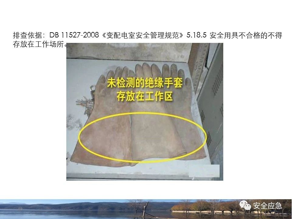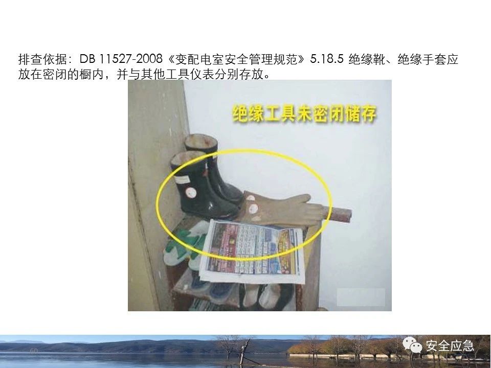 案例1 事故案例1:某輸電管理所對某35kV線路停電登檢,其中一段與10kV線路共桿塔架設(shè),35kV線路在上層,10kV線路在下層,工作前10kV、35kV線路均停電、驗(yàn)電懸掛接地線。工作過程中10kV線路送電,3名工作班成員1死2傷。 案例2 事故案例2:某供電所開展拆除10kV空線作業(yè)。該桿塔有2回10kV線路,一回在上方,運(yùn)行狀態(tài)。待拆除空線在下方。作業(yè)人員未進(jìn)行驗(yàn)電,登桿后掛接地線。在先掛好B相后,由于掛不到AC相,爬到電桿頂上,此時(shí)碰觸到運(yùn)行線路觸電死亡。 案例3 事故案例3:某供電所開展10kV線路拆除作業(yè)。桿塔西側(cè)待拆除線路在檢修狀態(tài),東側(cè)2回10kV線路分上下兩層在運(yùn)行狀態(tài)。工作任務(wù)結(jié)束后,工作負(fù)責(zé)人看見塔上電纜搭在第二臺鋼塔橫擔(dān)上,隨即上塔處理,準(zhǔn)備從塔的西面移至東面準(zhǔn)備抬電纜時(shí),后頸部碰觸到帶電線路觸電死亡。 (2)安全距離不夠的線路未停電 案例4 事故案例4:事故前,施工單位在正常運(yùn)行的10kV青龍線上方搭建竹跨越架。10kV青龍線99-100號桿段上方有帶電運(yùn)行的35kV田金線跨越,最短距離5.37米。由于10kV青龍線跨越架倒塌,導(dǎo)致斷桿、多檔導(dǎo)線脫落。隨后,工作人員開展缺處工作。在10kV青龍線導(dǎo)線收緊時(shí),導(dǎo)線被抬升后與上方運(yùn)行的35kV田金線安全距離不足放電,導(dǎo)致收線的8名施工人員觸電,4人死亡4人受傷。 案例5 事故案例5:某單位進(jìn)行400V干線收緊弧垂工作,工作地點(diǎn)上方交叉跨越的10kV線路距離400V主干配電線#1桿桿頂830mm,但未停電。工作人員準(zhǔn)備實(shí)施緊線作業(yè),當(dāng)左腿跨至橫擔(dān)上時(shí),上方交叉跨越的10kV線路對其右肩背放電。 案例6 事故案例6:某施工隊(duì)開展新建10kV線路穿越運(yùn)行的110kV線路作業(yè),兩回線距離僅有1.3m 左右,造成110kV線路對新架設(shè)10kV線路放電,死亡1人,重傷1人。 案例7 事故案例7:某施工隊(duì)進(jìn)行10kV新建立桿施工過程中,扒桿倒在鄰近運(yùn)行的10kV運(yùn)行線路上,導(dǎo)致人身觸電,2人死亡,1人受傷。 案例8 事故案例8:某施工隊(duì)負(fù)責(zé)人開展低壓線路架設(shè)工作。手拉導(dǎo)線由B2#桿展放上到配變后,兩名工作人員手持導(dǎo)線同時(shí)上到帶電的變壓器雙桿上,一名工作人員在上層工作時(shí)與10kV裸導(dǎo)線較近,將手持的400V絕緣導(dǎo)線誤碰到10kV變框小母線后,導(dǎo)至兩人同時(shí)觸電。 案例9 事故案例9:某施工隊(duì)開展10kV高壓跌落熔斷器安裝工作。本應(yīng)在原10kV阿租支線0號桿、1號桿,10kV一街Ⅱ回線26號桿、28號桿各裝一組接地線。但實(shí)際10kV一街Ⅱ回線27號桿大號側(cè)、原10kV阿租支線1號桿大號側(cè)各裝設(shè)了1組接地線。同時(shí),接地線的接地樁埋深為41 cm,因土壤長期干旱,造成接地電阻較大(實(shí)測值:333歐),遠(yuǎn)遠(yuǎn)超過接地要求值(30歐),接地線失去接地保護(hù)作用。由于10kV一街線坡頭支線(原帶電)與10kV一街Ⅱ回線(原不帶電)桿之間有交叉跨越(垂直距離約2米),檔距較大,刮大風(fēng)導(dǎo)致10kV一街線坡頭支線向上舞動,對10kV一街Ⅱ回線放電,致使2名作業(yè)人員觸電,1死1傷。 其它案例見37、38。 (3)錯(cuò)停線路 案例10 事故案例10:某工作人員與調(diào)度聯(lián)系停電線路時(shí),錯(cuò)誤說成其他線路,導(dǎo)致其他線路停電而工作線路未停電。隨后,工作人員在沒有采取驗(yàn)電、掛接地線等安全措施的情況下便登桿,造成觸電。 (4)開關(guān)柜相鄰柜之間沒有隔板,但未停相鄰間隔 案例11 事故案例11:某檢修班組開展10kV開關(guān)柜(GG1A柜)檢修作業(yè)。工作人員獨(dú)自爬上4321隔離開關(guān)柜頂從事4321隔離開關(guān)檢修相關(guān)工作。因其與相鄰間隔的帶電的10kVII段母線安全距離不夠,觸電死亡。 案例12 事故案例12:某工作人員在開關(guān)柜內(nèi)進(jìn)行二次接線,由于工作地點(diǎn)與相鄰柜之間沒有隔板,意外墜入相鄰帶電開關(guān)柜,導(dǎo)致觸電。 (5)不停電不正確使用安全工器具開展低壓作業(yè) 案例13 事故案例13:某廠家對220kV變壓器的繞組溫度計(jì)進(jìn)行更換消缺工作。在沒有對繞組溫度計(jì)工作電源(220V)停電的情況下作業(yè)。將帶有220V電壓的電纜芯線上的絕緣帶拆除時(shí),誤碰帶電芯線造成觸電死亡。 案例14 事故案例14:某供電所員工檢查一客戶家中斷電情況。巡線時(shí)發(fā)現(xiàn)220V低壓線路導(dǎo)線斷線,在未斷開低壓開關(guān)、未戴絕緣手套的情況下,試圖將導(dǎo)線卷起時(shí),不慎觸碰帶電導(dǎo)線中間裸露部分,導(dǎo)致觸電死亡。 案例15 事故案例15:某工作人員在檢查時(shí)發(fā)現(xiàn)220V低壓線路故障點(diǎn),在未戴手套、未使用絕緣梯子的情況下,在拆除三通PVC管時(shí),左手不慎觸碰帶電絕緣導(dǎo)線破損點(diǎn)裸露部分,導(dǎo)致觸電受傷。 2.驗(yàn)電環(huán)節(jié) (6)不檢查設(shè)備狀態(tài)、不驗(yàn)電 案例16 事故案例16:供電所某員工在未攜帶驗(yàn)電器、接地線、絕緣手套、絕緣靴、安全帽等必備安全工器具的情況下處理10kV用戶缺相故障。一名工作人員拉開AB相跌落保險(xiǎn)后,由于尿急想去小便,就把絕緣操作桿遞給正在低頭系安全帶的另一名工作人員,并說還有一相。另一名工作人員接過操作桿后