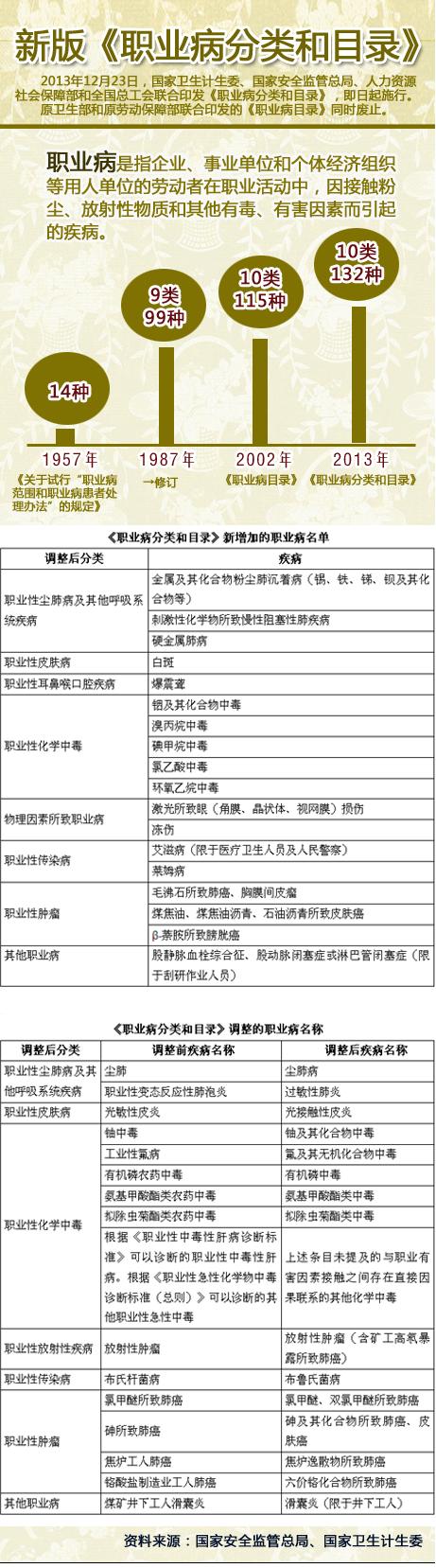 摘要: 2013年12月23日,國家衛(wèi)生計(jì)生委、國家安全監(jiān)管總局、人力資源社會保障部和全國總工會聯(lián)合印發(fā)《職業(yè)病分類和目錄》,即日起施行。原衛(wèi)生部和原勞動保障部聯(lián)合印發(fā)的《職業(yè)病目錄》同時廢止。