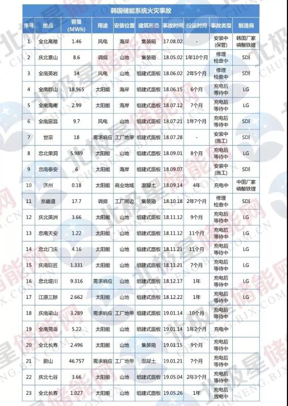 韓國(guó)政府公布23起儲(chǔ)能電站火災(zāi)事故調(diào)查結(jié)果 并提出四大改善措施