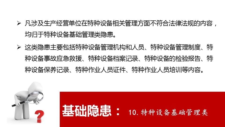 18 | 危險(xiǎn)物品的容器、運(yùn)輸工具,以及涉及人身安全、危險(xiǎn)性較大的海洋石油開采特種設(shè)備和礦山井下特種設(shè)備未經(jīng)具有專業(yè)資質(zhì)的機(jī)構(gòu)檢測、檢驗(yàn)合格,取得安全使用證或者安全標(biāo)志,投入使用的 |