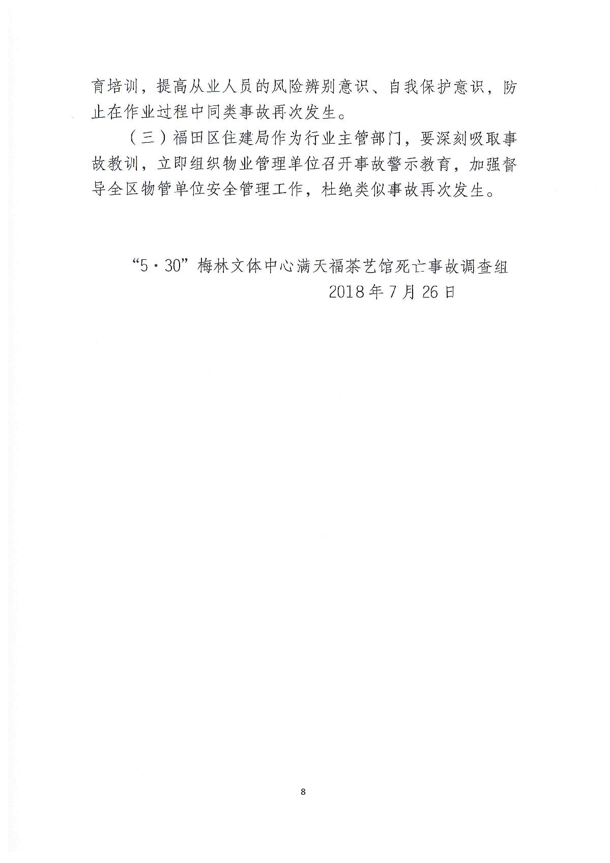“5.30”梅林文體中心滿天福茶藝館死亡事故調(diào)查報告