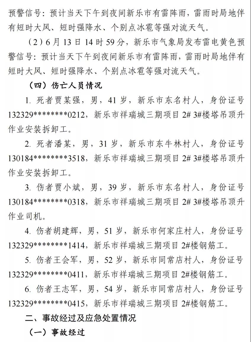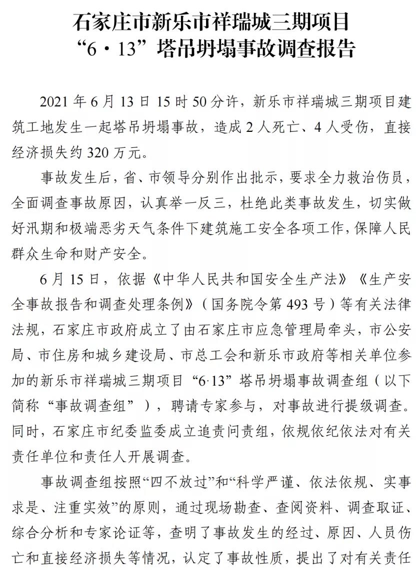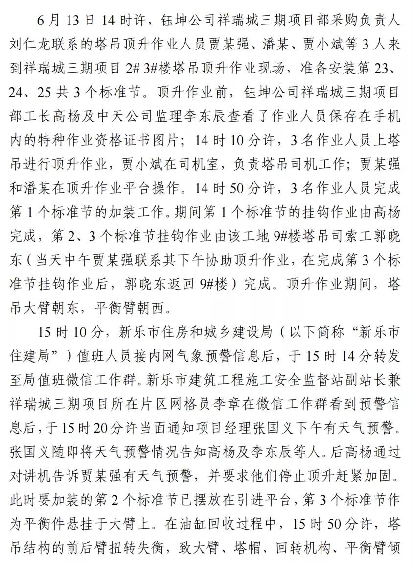 河北石家莊新樂市祥瑞城建筑工地在塔吊頂升作業(yè)事故調(diào)查報告