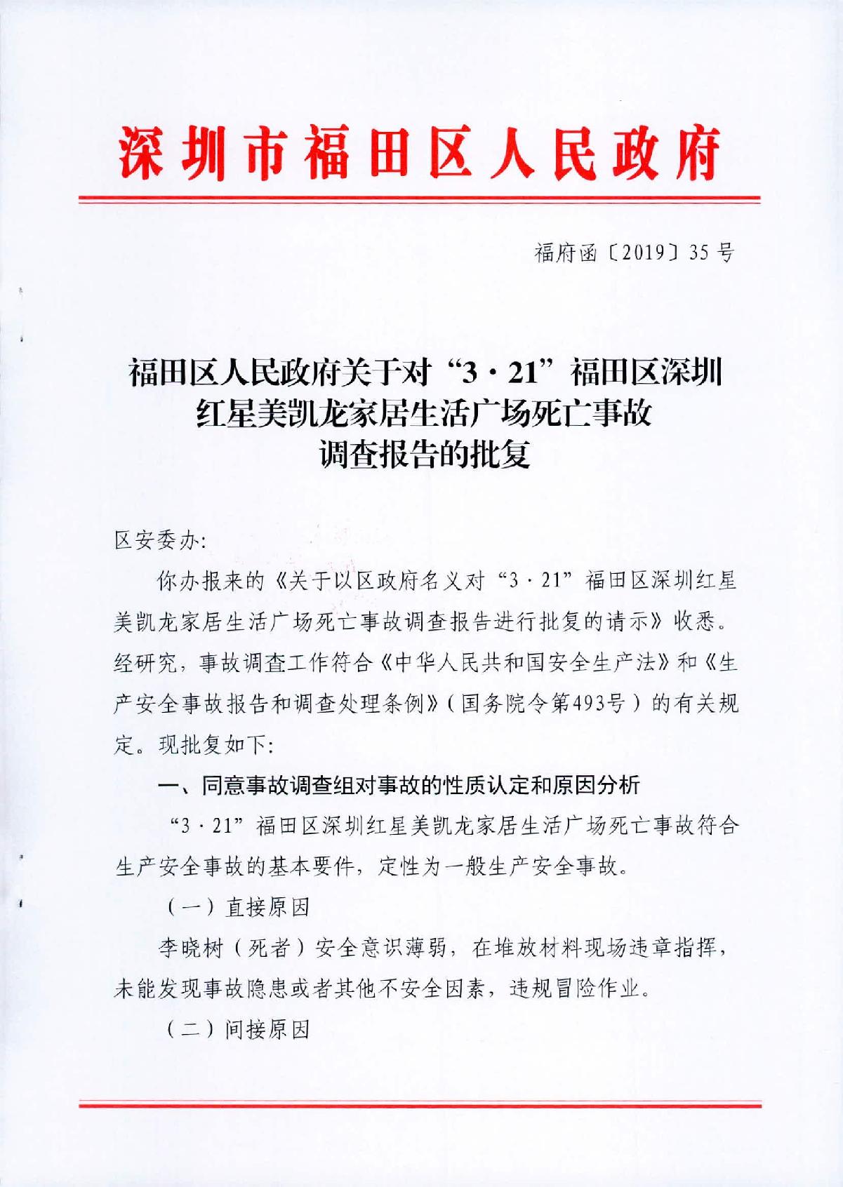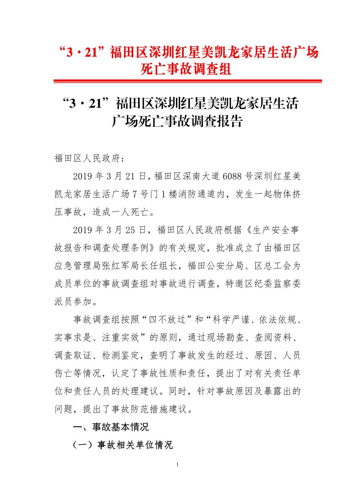 “3.21”福田區(qū)深圳紅心美凱龍家居生活廣場(chǎng)死亡事故調(diào)查報(bào)告