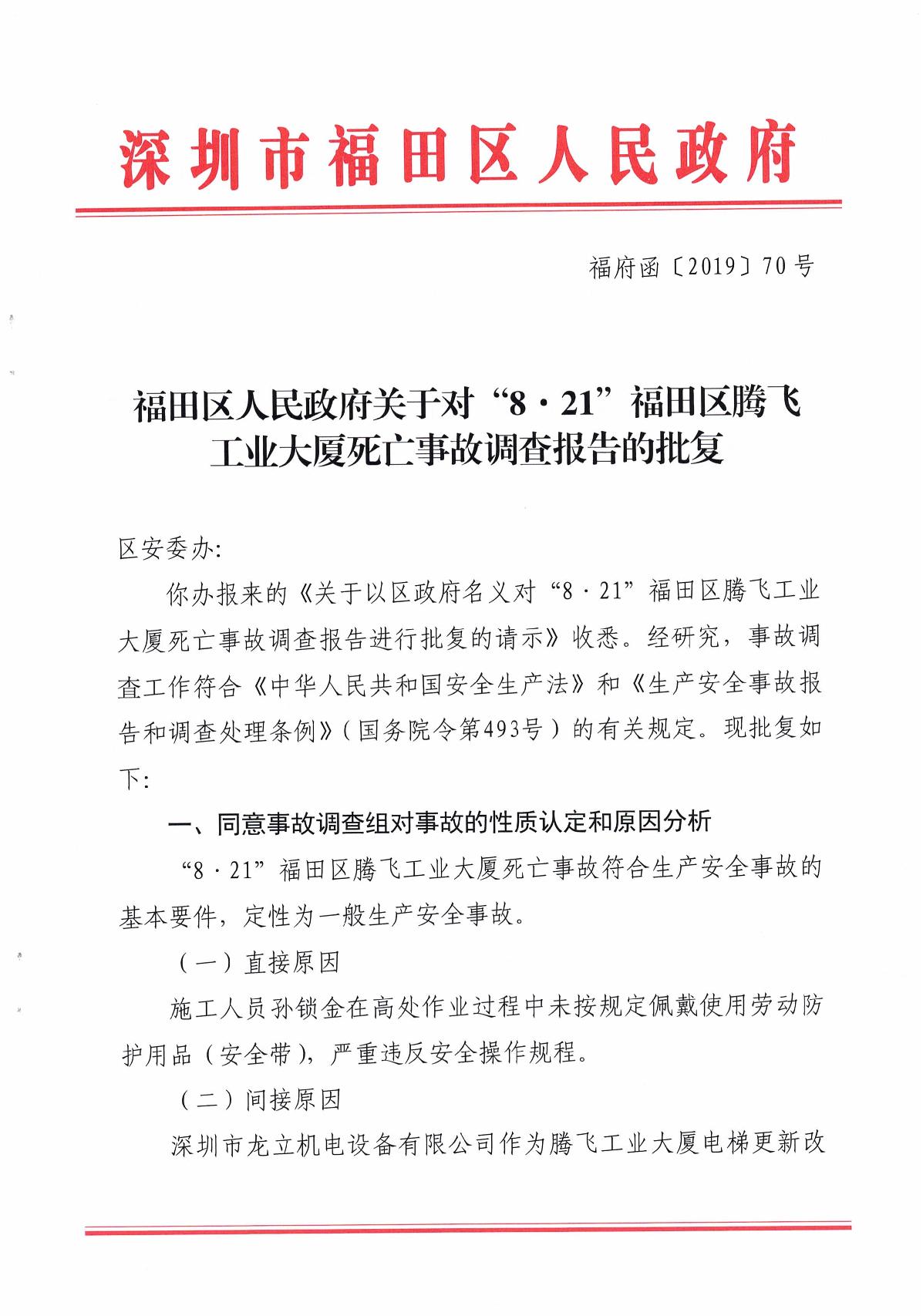 “8.21”福田區(qū)騰飛工業(yè)大廈死亡事故調查報告