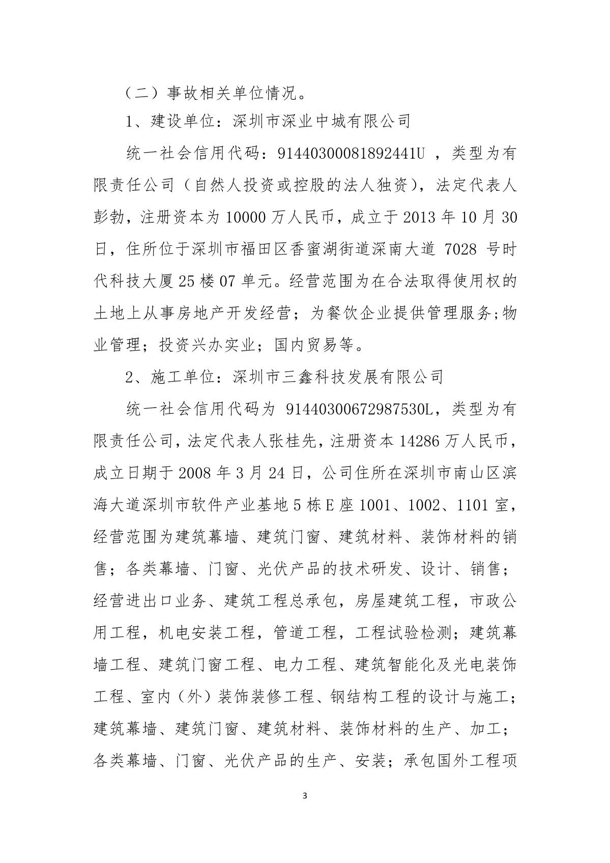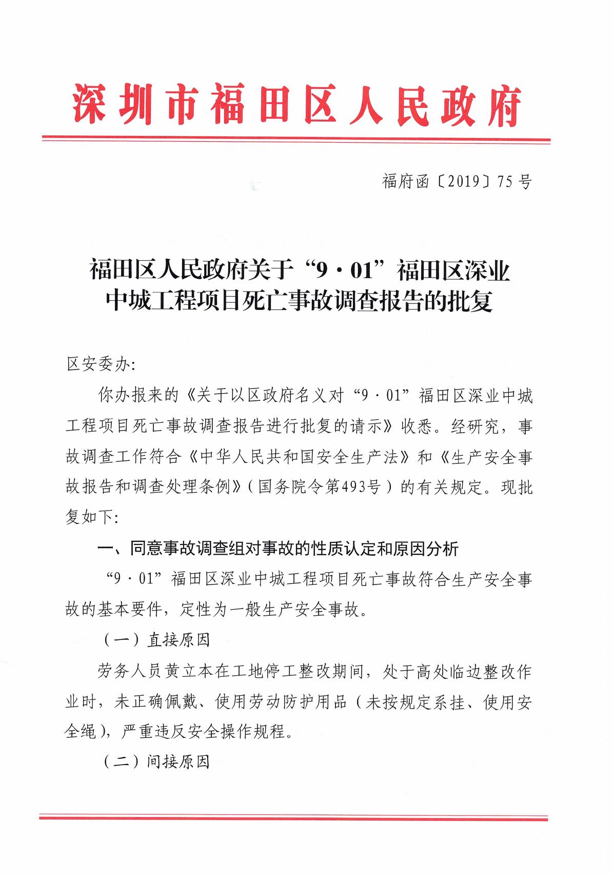 “9.01”福田區(qū)深業(yè)中城工程項目死亡事故調(diào)查報告