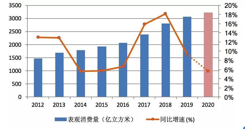 中國(guó)石油經(jīng)濟(jì)技術(shù)研究院今年年初預(yù)測(cè),我國(guó)2020年天然氣消費(fèi)量將達(dá)到3300億立方米,同比增速8.6%。