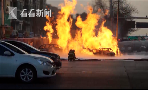 火災(zāi)發(fā)生后,相關(guān)部門第一時間趕赴現(xiàn)場實施撲救,交警部門全力疏導(dǎo)交通,確保車輛遠(yuǎn)端繞行。初步確認(rèn),該泄漏點為一建設(shè)工地內(nèi),火災(zāi)是地下燃?xì)夤芫€爆燃導(dǎo)致的,被引燃的五輛車內(nèi)當(dāng)時都沒有人在駕駛,事故中沒有人員傷亡。引燃的車輛多數(shù)已經(jīng)被燒毀報廢。目前火勢已經(jīng)被撲滅,爆燃的管線也已經(jīng)關(guān)閉,事故還在進(jìn)一步調(diào)查當(dāng)中。相關(guān)后續(xù)工作還在緊張進(jìn)行中。