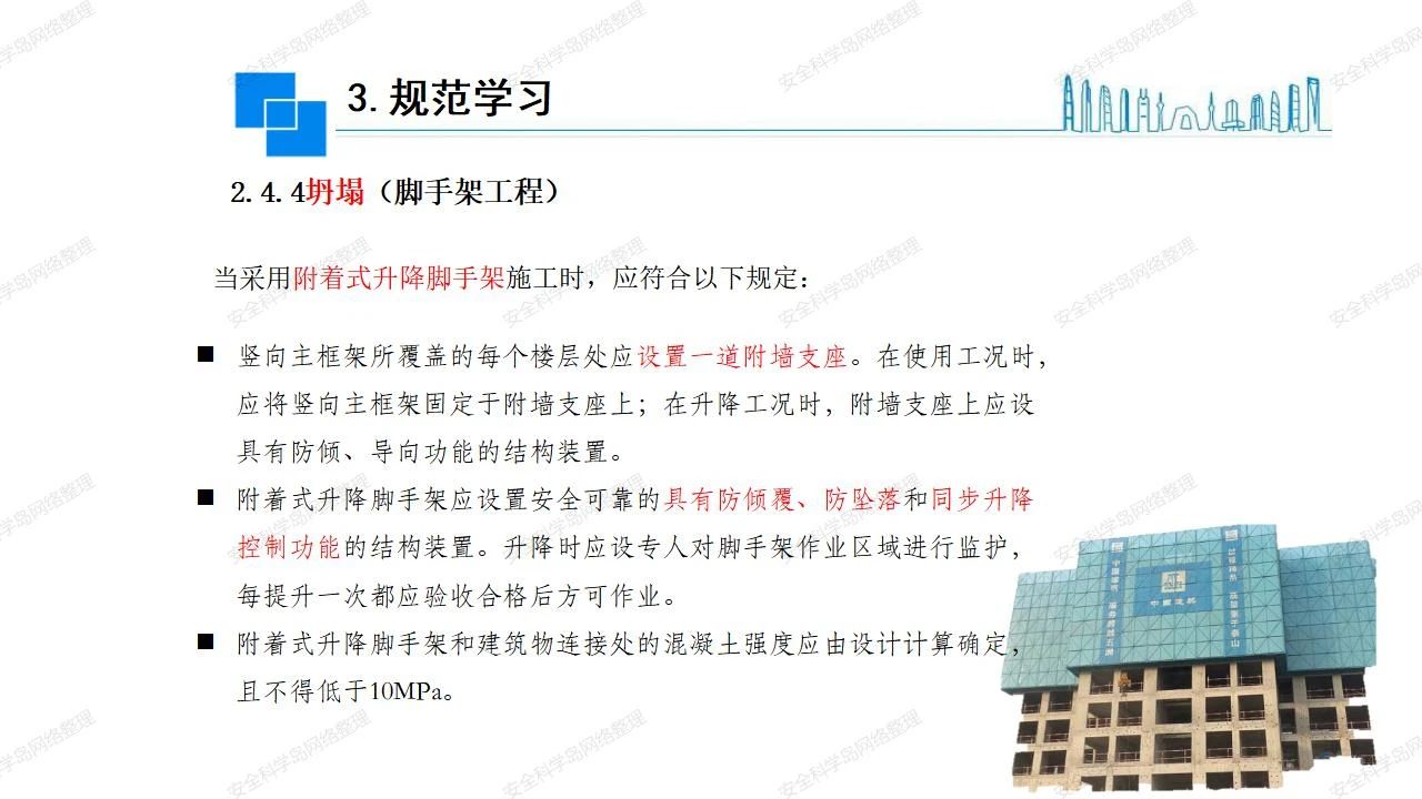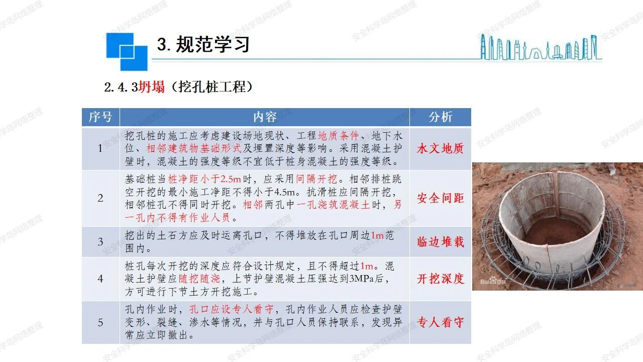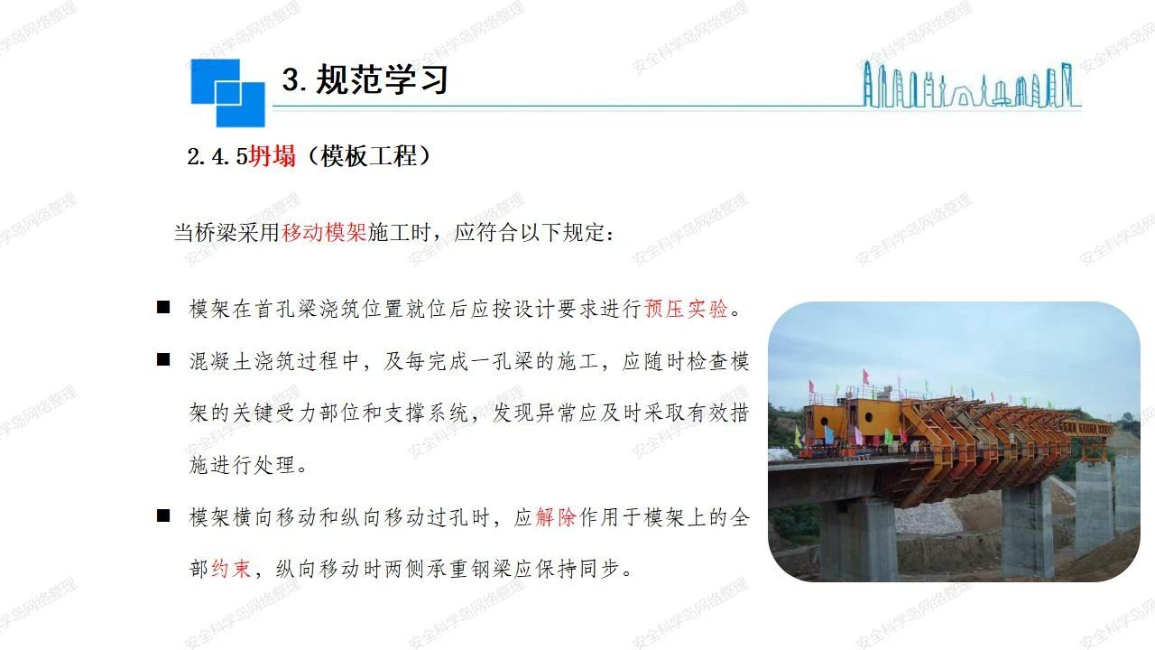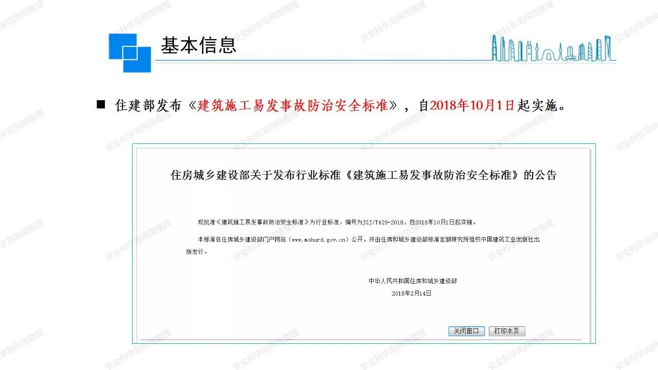 那么,坍塌事故發(fā)生的原因何在? (1)工程結(jié)構(gòu)設(shè)計不合理或計算失誤。 (2)施工前沒有編制切實可行的施工組織設(shè)計和專項施工方案,未做具體技術(shù)安全措施交底,特定施工項目未經(jīng)專家評審論證。 (3)腳手架、模板支撐、起重設(shè)備結(jié)構(gòu)設(shè)計不合理或計算失誤。 (4)建筑物結(jié)構(gòu)質(zhì)量低劣,安全性能差,地基不穩(wěn)定,不均勻沉降。 (5)建筑物結(jié)構(gòu)支撐連接(焊接)不牢固,超載、外力沖擊或嚴重偏心載荷造成失穩(wěn)等。 (6)腳手架及高大模板支架架體結(jié)構(gòu)不符合設(shè)計與規(guī)范要求,整體安全穩(wěn)定性差、超載或嚴重偏心荷載,遇外力沖擊或振動,不按程序拆除架體等因素造成失穩(wěn)等。 (7)基坑、土石方挖土時土壁不按規(guī)定留設(shè)邊坡(甚至負坡度),缺乏支護或支護不良,土質(zhì)不良或出現(xiàn)地下水、地表水的滲透,土壁經(jīng)不起重載側(cè)壓力或遇外力振動、沖擊等因素造成土壁失穩(wěn)滑坡坍塌。 (8)起重設(shè)備技術(shù)安全性能差,結(jié)構(gòu)強度不夠,安全防護裝置不完善,垂直起重機與建筑物拉結(jié)差,出現(xiàn)超載、碰撞、升降過度或違章操作等原因,造成起重設(shè)備倒塌。 (9)現(xiàn)場作業(yè)環(huán)境不良,安全防護設(shè)施缺乏。 (10)施工現(xiàn)場管理松弛,各項質(zhì)量、安全管理制度流于形式。 (11)片面追求經(jīng)濟利益,偷工減料,施工質(zhì)量差。 (12)施工隊伍素質(zhì)差,不執(zhí)行法規(guī)、標準,違章指揮、違章作業(yè),思想上存在盲目性、冒險性、隨意性。 如何預防坍塌事故? (1)根據(jù)設(shè)計與規(guī)范要求,認真編制施工組織設(shè)計和專項施工技術(shù)方案、應(yīng)急預案,做好特定施工項目專家評審論證及技術(shù)安全交底工作。 (2)支架、腳手架等搭設(shè)完成后應(yīng)組織相關(guān)部門驗收。支架還應(yīng)按方案要求進行堆載預壓。 (3)嚴格控制模板支架、腳手架等承受的荷載,模板、腳手架及其支撐體系的施工荷載應(yīng)做到均勻分布,并不得超過設(shè)計要求。嚴禁超載、對構(gòu)筑物進行外力沖擊或偏心載荷。 (4)基坑、土石方挖土時土壁按規(guī)定留設(shè)邊坡,嚴格按照設(shè)計坡度進行放坡開挖,進行有效支護和排水,并設(shè)置專人對邊坡穩(wěn)定性進行檢測?;討?yīng)基坑頂邊緣1m范圍內(nèi)禁止堆放材料。 (5)加強起重設(shè)備的采購管理,嚴禁使用不合格的起重設(shè)備,并定期進行檢測,確保各項性能和安全防護裝置良好;加強起重設(shè)備的安裝、拆除管理;加強起重設(shè)備的使用管理,嚴禁超載、碰撞或違章操作;加強對起重設(shè)備操作人員、指揮人員、安拆人員的安全教育培訓,考核合格后持證上崗。 (6)加強施工現(xiàn)場管理,設(shè)置有效安全防護設(shè)施。 (7)加強對從業(yè)人員的培訓教育,提高隊伍素質(zhì),強化質(zhì)量、安全意識。 (8)強化工程質(zhì)量報驗和檢驗、簽證制度,不經(jīng)檢驗合格,不準進行下道工序施工。 (9)發(fā)現(xiàn)坍塌事故的險情,要認真分析原因,積極研究提出排除隱患的整改措施,并監(jiān)督執(zhí)行。