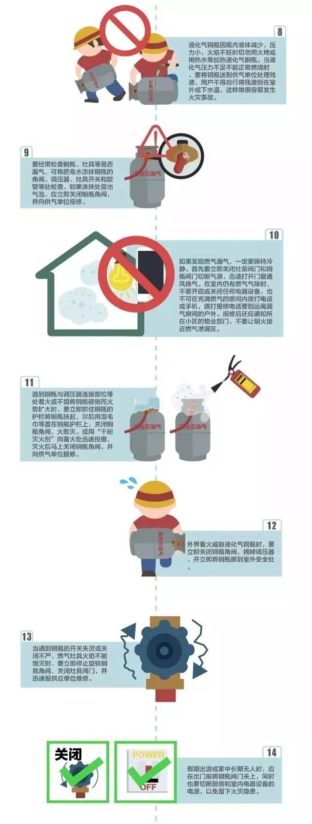 液化氣罐爆炸很可怕,安全使用液化氣罐很重要。所以,除了掌握上面的安全知識(shí),液化氣罐周身遍布銹跡和油漬、用手搖晃液化氣瓶、將液化氣瓶?jī)A斜放置、將液化氣罐放入熱水盆…這些事也萬(wàn)萬(wàn)不要做了!