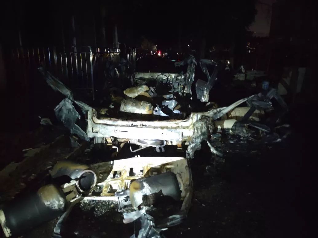 2時(shí)34分,中隊(duì)剛到場,指揮員立即勘查現(xiàn)場,小車已被大火吞噬,火災(zāi)已蔓延到附近的出租屋,有人員被困,聽到有六七聲爆炸聲,并看到有氣瓶飛到河對面。