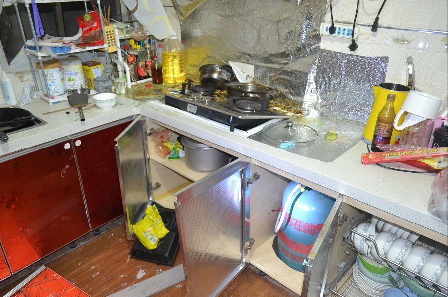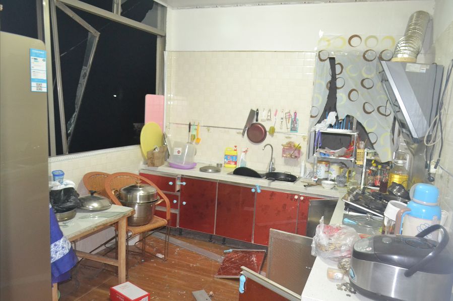 爆炸點位于新村鎮(zhèn)一村民楊某某家中的廚房,現(xiàn)場一片狼籍,窗戶也已經(jīng)飛出窗外。幸運的是,爆炸發(fā)生時沒人在現(xiàn)場,未發(fā)生人員傷亡。