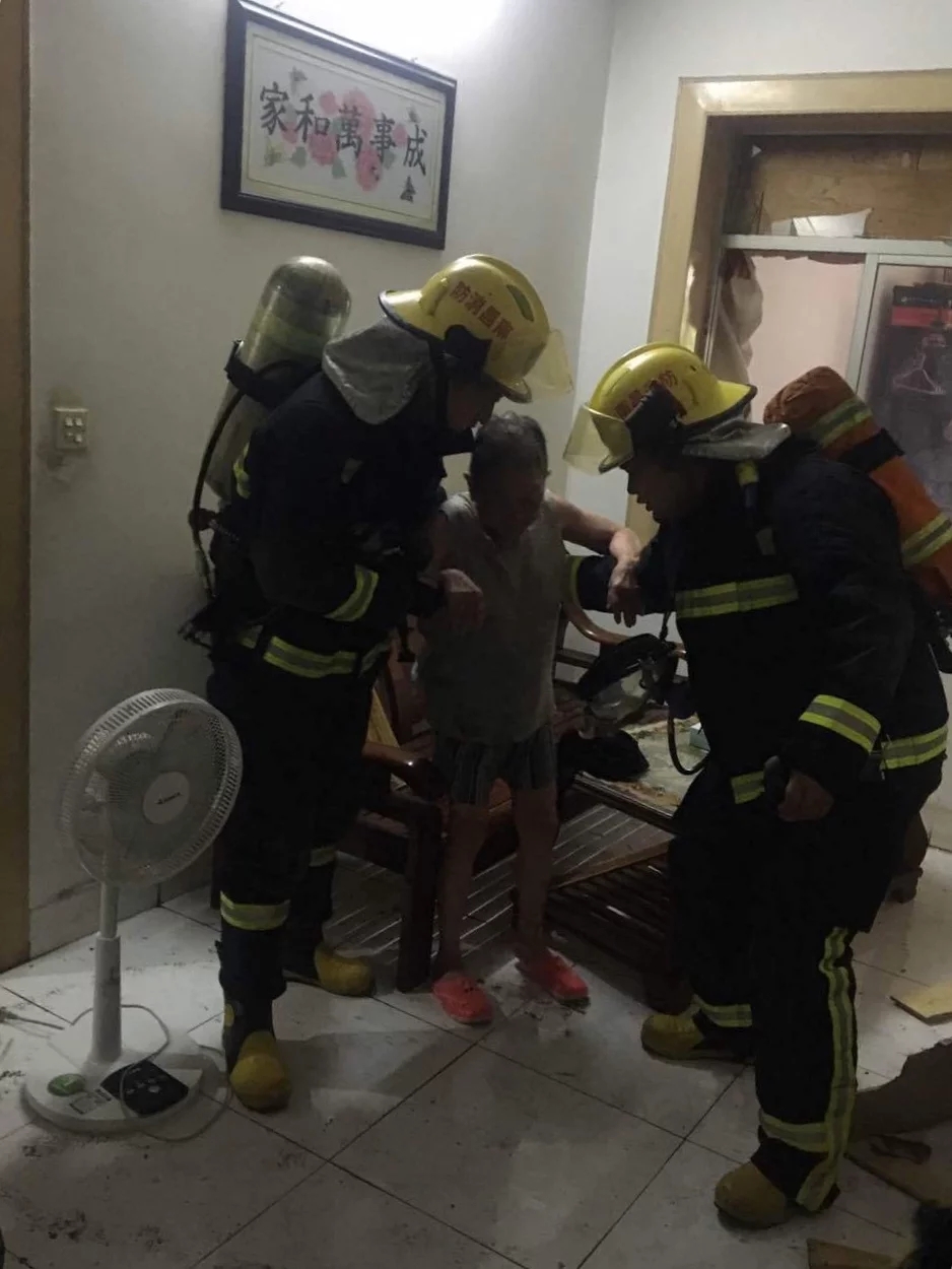 消防官兵到現(xiàn)場后,發(fā)現(xiàn)是一所居民樓發(fā)生爆炸,房屋周圍到處都是炸碎的玻璃,屋內(nèi)還有兩名老人,房屋周圍能聞到濃烈的煤氣味道。若不立即救出兩名老人,隨時會發(fā)生窒息的危險,消防官兵立即把門撞開,進(jìn)屋內(nèi)發(fā)現(xiàn)老人還有清晰的意識,兩名老人身上均有不同程度的燒傷。