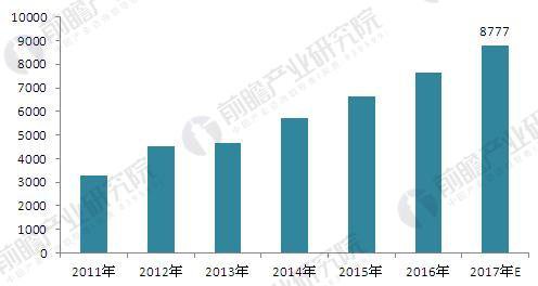 圖表 4:2011-2017 年中國天然氣發(fā)電累計裝機容量(單位:萬千瓦)