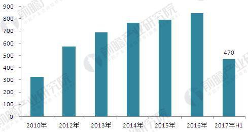 圖表 5:2010-2017 年城市燃氣消費量(單位:億立方米)
