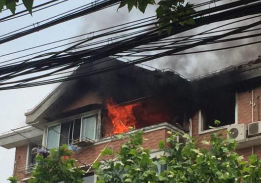 據(jù)周邊居民介紹,發(fā)生事故的是淮陰路599弄一居民小區(qū)6樓的一戶人家。事發(fā)在今天上午10時45分左右,當時附近居民先后聽到兩次聲響,其中第一次響聲較大,第二次響聲相對較小。其間,附近居民樓的樓房還發(fā)生了輕微震動。隨后,附近居民看到6樓人家的窗口冒出熊熊火光和滾滾黑煙。事發(fā)居民家的窗框被氣浪掀至道路上,玻璃碎渣散落一地,現(xiàn)場一片狼藉。