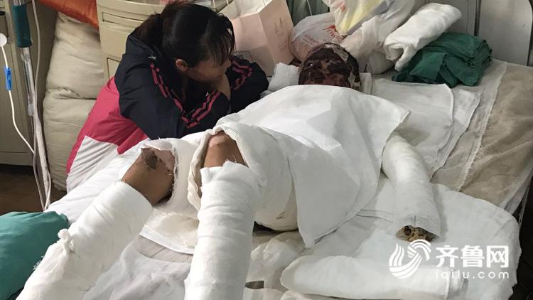 李慧霞介紹說(shuō):“9月10號(hào)液化氣泄漏,引起他父子燒傷,然后送于高密市人民醫(yī)院,結(jié)果高密人民醫(yī)院說(shuō)是病情嚴(yán)重沒接收,然后轉(zhuǎn)入濰坊市人民醫(yī)院,醫(yī)生診斷說(shuō)孩子的父親是90%燒傷面積以上,孩子是40%以上的燒傷面積。”